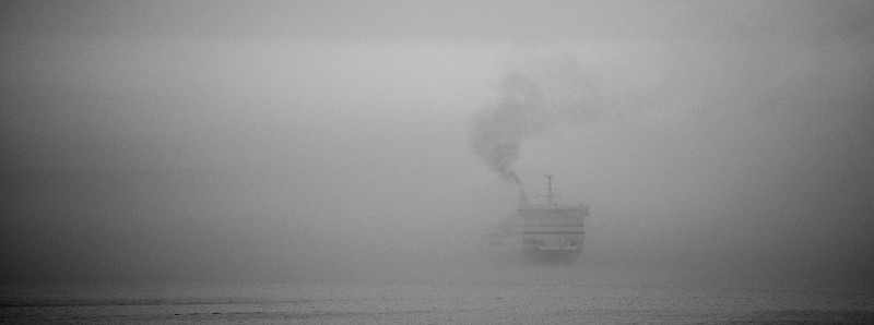 Ferry dans la brume matinale